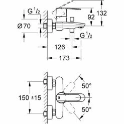 GROHE Wanneneinlauf Atrio 13139_3, Wandmontage, Auslauf Mit Mousseur, Ausladung 171 Mm, Cool Sunrise