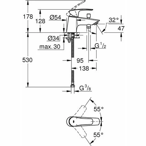 Grohe EUROSMART Einloch-Wannen- und Brausemischer.
