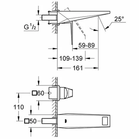GROHE Allure Brilliant 2-Loch-Waschtischbatterie Wandmontage (ohne Unterputz-Einbaukörper) Fertigmontageset für 23 200 GROHE StarLight Oberfläche GROHE EcoJoy 5,0 l/min. Durchflusskonstanthalter Auslauf mit integriertem Mousseur Stichmaß 110 mm Auslad