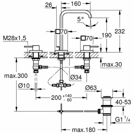 GROHE Allure 3-Loch-Waschtischbatterie, DN 15 Keramik-Oberteile 1/2”, 90 Grad GROHE StarLight Oberfläche Durchflussbegrenzer 8 l/min Auslauf mit Mousseur druckfeste, flexible Verbindungsschläuche zwischen Mittelkörper und Seitenventilen Zugstangen-Abl