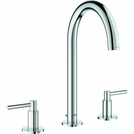 “Keramik-Oberteile 1/2″”, 90°, StarLight Oberfläche, EcoJoy 5,7 l/min Laminar Mousseur, schwenkbarer Bogenauslauf mit Anschlagbegrenzung, Zugstangen-Ablaufgarnitur 1 1/4″”, druckfeste, flexible Verbindungsschläuche zwischen Mittelkörper und Seitenventilen, mit Markierungs-Set (“”H”” + “”C””)”