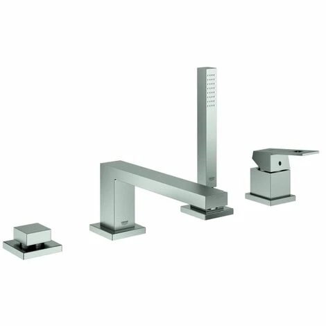 GROHE Eurocube 4-Loch Einhand-Wannenkombination GROHE SilkMove 46 mm Keramikkartusche GROHE StarLight Oberfläche bestehend aus: Auslauf-Aufnahme vormontiert Einhandmischer-Bedienelement Wanneneinlauf mit Mousseur Umstellung Wanne/Brause Handbrause Euphor