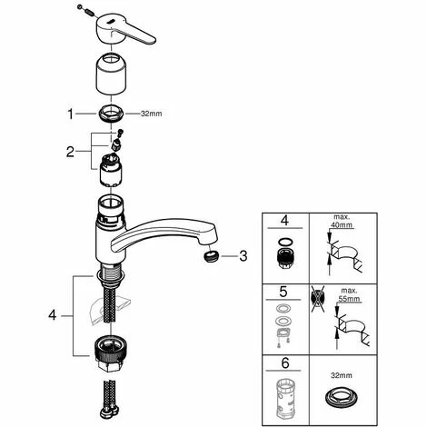 - GROHE Zero getrennte innenliegende Wasserwege – kein Kontakt mit Blei oder Nickel innerhalb der Armatur