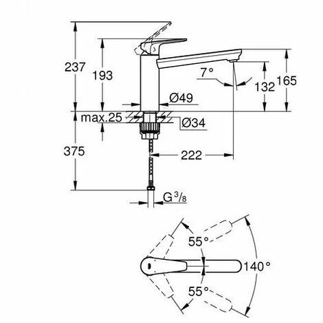 – Schwenkbereich 140°