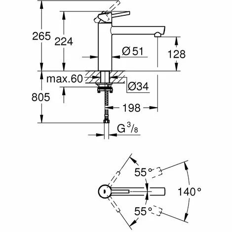 - Schwenkbereich 140°