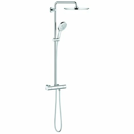 GROHE Rainshower SmartActive 310 Duschsystem mit Thermostatbatterie für die Wandmontage bestehend aus: horizontal schwenkbarer 450 mm Duscharm Aufputz-Thermostat mit Aquadimmer Funktion ermöglicht den Wechsel zwischen: Rainshower Cosmopolitan 310 Metall