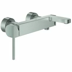 GROHE Plus Einhand-Wannenbatterie, DN 15 Wandmontage GROHE SilkMove 35 mm Keramikkartusche mit Temperaturbegrenzer GROHE StarLight Oberfläche automatische Umstellung: Wanne/Brause Laminarstrahlregler Brauseabgang unten 1/2” integrierter Rückflussverhin