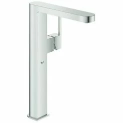 GROHE Plus Einhand-Waschtischbatterie, DN 15 XL-Size Einlochmontage für freistehende Waschschüsseln GROHE SilkMove 28 mm Keramikkartusche mit Temperaturbegrenzer GROHE StarLight Oberfläche GROHE EcoJoy 5,7 l/min SpeedClean Mousseur GROHE AquaGuide vers