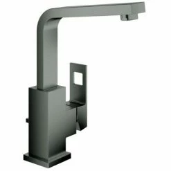 GROHE Eurocube Einhand-Waschtischbatterie, DN 15 L-Size Einlochmontage GROHE SilkMove 28 mm Keramikkartusche mit Temperaturbegrenzer GROHE StarLight Oberfläche GROHE QuickFix Plus Schnellbefestigungssystem Auslauf mit Mousseur schwenkbarer Rohrauslauf mi