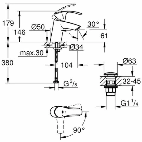 GROHE Eurosmart Einhand-Waschtischbatterie, DN 15 S-Size Einlochmontage GROHE SilkMove ES 35 mm Keramikkartusche Energie-Spar-Funktion Mittelstellung kalt variabel einstellbare Mengenbegrenzung mit Temperaturbegrenzer GROHE StarLight Oberfläche GROHE Eco