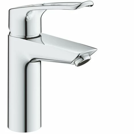 mit Temperaturbegrenzer GROHE Zero getrennte innenliegende Wasserwege – kein Kontakt mit Blei oder Nickel flexible Anschlussschläuche GROHE FastFixation Schnellbefestigungssystem M-Size GROHE SilkMove 28 mm Keramikkartusche GROHE StarLight Oberfläche Einlochmontage variabel einstellbare Mengenbegrenzung GROHE EcoJoy 5.7 l/min Mousseur glatter Körper mit Push-open Ablaufgarnitur 1 1/4″ Eurosmart Einhand-Waschtischbatterie. DN 15 offener Metall-Hebelgriff