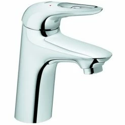 GROHE Eurostyle Einhand-Waschtischbatterie, DN 15 S-Size Einlochmontage offener Metall-Hebelgriff GROHE SilkMove 35 mm Keramikkartusche variabel einstellbare Mengenbegrenzung mit Temperaturbegrenzer GROHE StarLight Oberfläche GROHE EcoJoy 5,7 l/min Mouss
