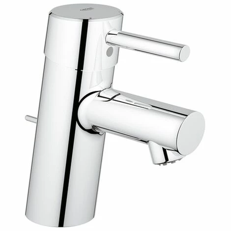 GROHE Concetto Einhand-Waschtischbatterie, DN 15 S-Size Einlochmontage GROHE SilkMove 35 mm Keramikkartusche variabel einstellbare Mengenbegrenzung GROHE StarLight Oberfläche GROHE QuickFix Schnellbefestigungssystem Auslauf mit Strahlregler Zugstangen-Ab