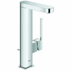 GROHE Plus Einhand-Waschtischbatterie, DN 15 L-Size Einlochmontage GROHE SilkMove 28 mm Keramikkartusche mit Temperaturbegrenzer GROHE StarLight Oberfläche GROHE EcoJoy 5,7 l/min SpeedClean Mousseur GROHE AquaGuide verstellbarer Mousseur Schnell-Montage-