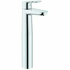 GROHE BauLoop Einhand-Waschtischbatterie, DN 15 XL-Size Einlochmontage für freistehende Waschschüsseln GROHE Longlife 28 mm Keramikkartusche GROHE StarLight Oberfläche GROHE EcoJoy 5,7 l/min Mousseur Schnell-Montage-System glatter Körper flexible A