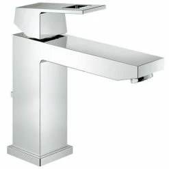 GROHE Eurocube Einhand-Waschtischbatterie, DN 15 M-Size Einlochmontage GROHE SilkMove 28 mm Keramikkartusche mit Temperaturbegrenzer GROHE StarLight Oberfläche GROHE EcoJoy 5,7 l/min SpeedClean Mousseur GROHE QuickFix Plus Schnellbefestigungssystem Zugst
