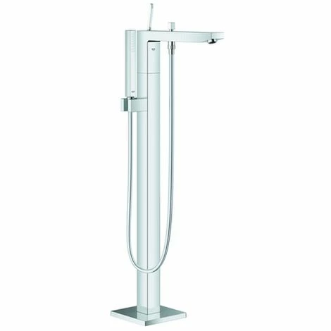 GROHE Eurocube Joy Einhand-Wannenbatterie DN 15, Bodenmontage Fertigmontageset für 45 984 ohne Rohbau-Set GROHE FeatherControl Joystick Kartusche GROHE StarLight Oberfläche automatische Umstellung: Wanne/Brause Auslauf mit Mousseur Handbrause Euphoria C