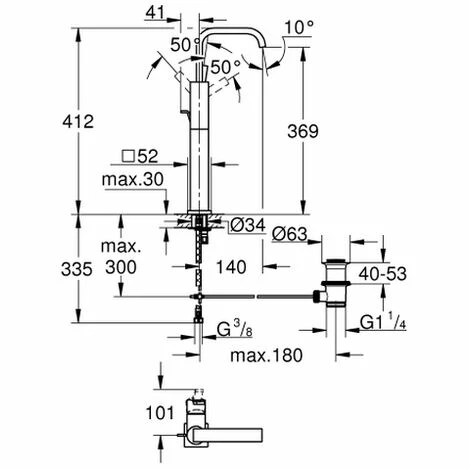 GROHE Allure Einhand-Waschtischbatterie, DN 15 XL-Size Einlochmontage für freistehende Waschschüsseln GROHE SilkMove 28 mm Keramikkartusche GROHE StarLight Oberfläche GROHE EcoJoy 6,0 l/min. Durchflussbegrenzer Schnell-Montage-System Auslauf mit Mousse