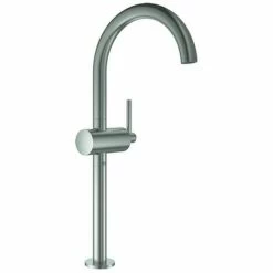GROHE Atrio Einhand-Waschtischbatterie, DN 15 XL-Size Einlochmontage für freistehende Waschschüsseln GROHE SilkMove 28 mm Keramikkartusche GROHE StarLight Oberfläche GROHE EcoJoy 5,7 l/min Laminar Mousseur schwenkbarer Bogenauslauf mit Mousseur mit Ans