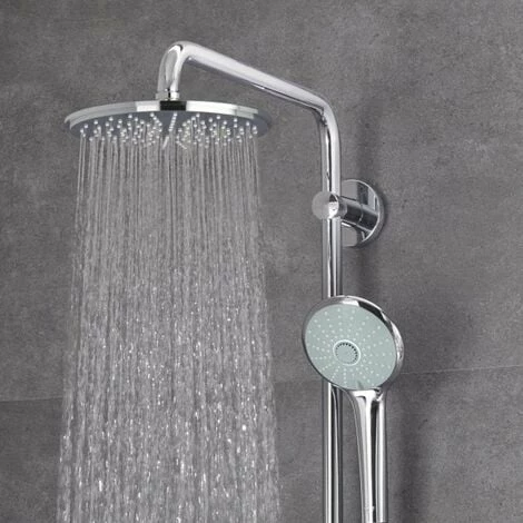 Lassen Sie sich unter der extra großen Brause des GROHE Euphoria 210 Duschsystems mit Umstellung von einem Duschstrahl Ihrer Wahl verwöhnen – entspannend oder belebend. Das System bietet drei verschiedene Strahlarten, passend für jeden Genuss: einen sanften Rain Strahl, den umweltfreundlichen SmartRain Strahl und den belebenden Massage Strahl. Die GROHE DreamSpray Technologie garantiert einen gleichmäßigen Strahl aller Düsen.