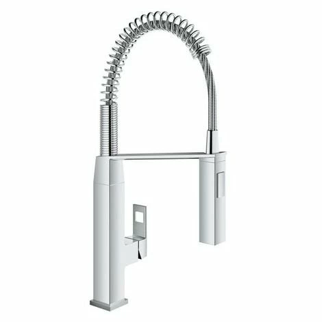 Die an Profiküchen ausgerichtete Grohe Eurocube Professional ist eine leistungsstarke Ergänzung für jede geschäftige Küche. Sie ergänzt Ihr Konzept durch zeitgemäßen Stil, leistungsstarke Funktionen und Flexibilität. Die Armatur bietet eine professionelle Spülbrause mit Federaufhängung und einem Schwenkbereich von 360 Grad. Für zusätzliche Reichweite und Flexibilität sorgt außerdem eine herausziehbare Spülbrause mit feinperligem Spül- oder kraftvollem Brausestrahl – ideal für das Waschen von Gemüse und das Säubern der Arbeitsfläche sowie für Doppelspülen. Im Innern garantiert die Grohe SilkMove Kartuschentechnologie eine lebenslang leichtgängige Bedienung und die präzise Regelung von Wasserfluss und Temperatur. Dank Schnellmontage-System verläuft die Montage schnell und unkompliziert. Die matte Grohe SuperSteel Edelstahloberfläche ist kratzbeständig und behält ihr anspruchsvolles Aussehen über viele Jahre hinweg. Die klare, architektonisch geprägte Gestaltung der Armatur verleiht modern konzipierten Küchen einen professionellen Touch.