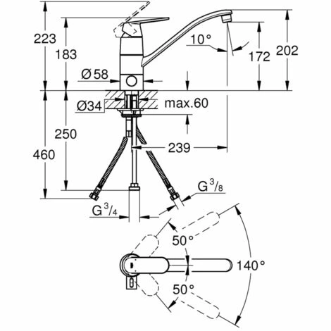 Volle Flexibiltät für alle alltäglichen Küchenarbeiten: Der Auslauf lässt sich mit einem Aktionsradius von 140° bequem und flüssig steuern. Mit der integrierten Schwenkbegrenzung gewinnen Sie außerdem die volle Bedienkontrolle über Ihre Armatur – so können Sie gezielt vermeiden an Schränken oder Wänden anzustoßen.
