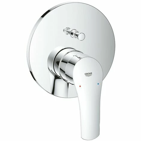 GROHE Eurosmart Einhand-Wannenbatterie Fertigmontageset für Rapido SmartBox (35 600/35 604) GROHE SilkMove 46 mm Keramikkartusche GROHE StarLight Oberfläche Wandrosette mit GROHE FastFixation mit verdeckter Rosetten- und Schaftabdichtung, verdeckte Befestigung Rosette aus Metall, nachträglich 6 Grad ausrichtbar automatische Umstellung: Wanne/Brause Durchfluss: Abgang B = 27 l/min, Abgang C = 27 l/min ohne Rohbau-Set Bedienungshebel aus Metall Professional Edition