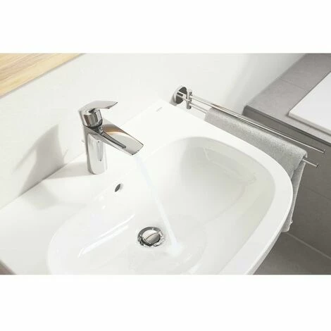 GROHE Eurosmart Einhand-Waschtischbatterie, DN 15 M-Size Einlochmontage Bedienungshebel aus Metall GROHE SilkMove 28 mm Keramikkartusche variabel einstellbare Mengenbegrenzung mit Temperaturbegrenzer GROHE StarLight Oberfläche GROHE EcoJoy 5,7 l/min Mousseur GROHE Zero getrennte innenliegende Wasserwege – kein Kontakt mit Blei oder Nickel innerhalb der Armatur GROHE FastFixation Schnellbefestigungssystem Zugstangen-Ablaufgarnitur 1 1/4” flexible Anschlussschläuche Professional Edition