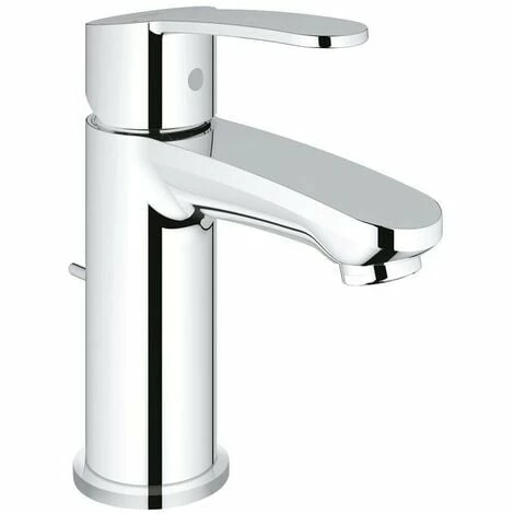 GROHE Eurostyle Cosmopolitan Einhand-Waschtischbatterie, DN 15 S-Size Einlochmontage GROHE SilkMove 28 mm Keramikkartusche GROHE StarLight Oberfläche GROHE FastFixation Schnellbefestigungssystem Zugstangen-Ablaufgarnitur 1 1/4” flexible Anschlussschläuche