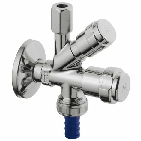 Grohe Geräte-Kombi-Eckventil 41073 1/2 Zoll Produktmerkmale: Material: Messing Mit Kartuschen-Oberteil am absperrbaren Kupferrohr-Anschluss Mit Fettkammeroberteil am Geräteanschluss Mit Rückflussverhinderer Mit Rosette Mit Längenausgleich 3/8 x 10mm Mit Schlauchverschraubung Mit PA-Prüfzeichen Farbe:verchromt