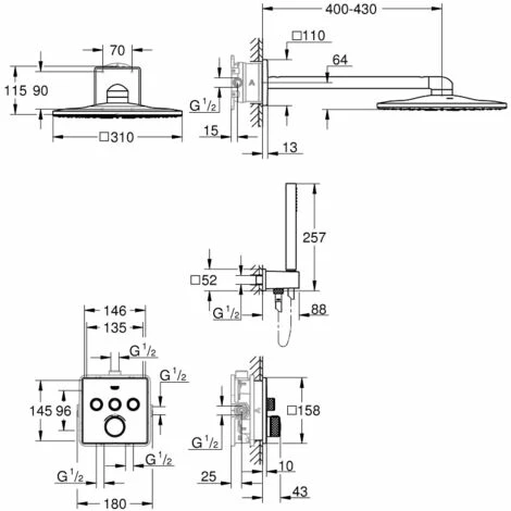 GROHE Grohtherm SmartControl Duschsystem Unterputz mit Rainshower SmartActive 310 Cube bestehend aus: Unterputz-Thermostat mit 3 Absperrventilen Grohtherm SmartControl Fertigmontageset (29 126) Rapido SmartBox (35 600/35 604) Rainshower SmartActive 310 Cube Kopfbrause-Set (26 479) und Rohbauset für Kopfbrause-Set (26 483) Euphoria Cube Stick Handbrause (27 698) Euphoria Cube Wandanschlussbogen mit integriertem Wandbrausehalter (26 370) Rotaflex Metallbrauseschlauch 1.500 mm (28 417) Professional Edition