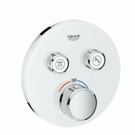 Die intuitive Bedienung und das schlanke Design des Grohtherm SmartControl Unterputz-Thermostats im lässigen Moon White macht das Duschen und Baden zu einer wahren Luxuserfahrung. Mithilfe der innovativen SmartControl Technologie können Sie Ihre gewünschte Strahlquelle auswählen und die Wassermenge durch Drücken und Drehen eines Knopfes regeln. Dank der zwei Ventile können Sie mühelos zwischen Kopf- und Handbrause bzw. zwischen Dusche und Badewanne wechseln oder auch beides kombinieren. Die integrierte Grohe TurboStat Technologie beugt unerwünschten Temperaturschwankungen vor. Dank der Grohe EasyLogic Kennzeichnungen und der Struktur der Knöpfe mit auswechselbaren Symbolen sind diese leicht und intuitiv zu bedienen. Die familienfreundliche Überbrückungstaste Grohe SafeStop ermöglicht es, eine maximale Temperatur von 38 °C einzustellen. So lassen sich Verbrennungen verhindern.