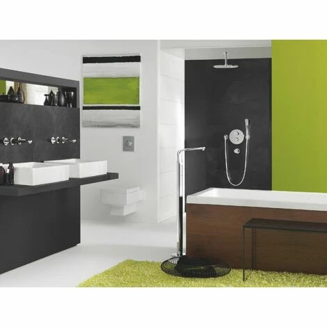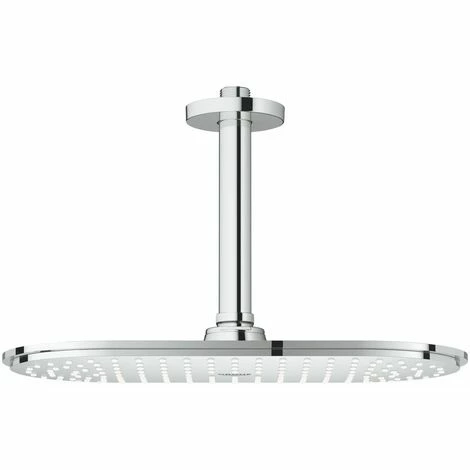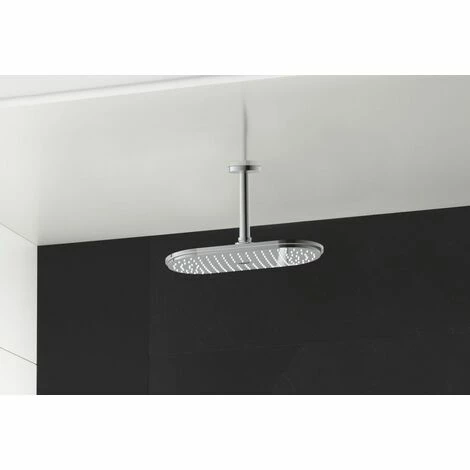 Absoluter Blickfang in Ihrer Dusche – das Grohe Rainshower Veris Kopfbrauseset.Die hochwertige und absolut pfegeleichte Chromoberfläche StarLight und die ovale Form der Brause werden zum Hingucker im Ihrem Badezimmer. Die DropStop-Technologie verhindert ein unnötiges Nachtropfen der Brause. Unansehnliche Kalkablagerungen an der Brause entfernen Sie einfach, indem Sie mit den Fingern über die Silikondüsen wischen dank des GROHE SpeedClean Antikalk-Systems.Mit dem integrierten Kugelgelenk können Sie die Brause nach Ihren Wünschen ausrichten. Für ein vollkommenes Duscherlebnis sorgt die Grohe DreamSpray-Technologie, die eine belebende und gleichmäßige Verteilung des Wassers auf alle aktiven Düsen gewährleistet.GROHE DreamSpray: perfektes StrahlbildGROHE EcoJoy: sparsam bei vollem Duschgenuss GROHE StarLight ChromoberflächeGROHE SpeedClean Antikalk-System1 Strahlart: Rain (gleichmäßiger, weicher Strahl)Wasserverbrauch: max. 9,5 Liter / minfür Durchlauferhitzer geeignetDeckenauslass 142