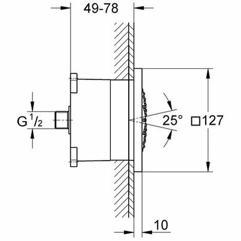 GROHE Rainshower F-Series 5” Seitenbrause Normalstrahl inklusive Einbaukörper 127 x 127 mm Strahlbildner mit Kugelgelenk (+/- 12,5 Grad schwenkbar) Anschlussgewinde 1/2” GROHE DreamSpray perfektes Strahlbild GROHE StarLight Oberfläche GROHE FlowBalanc
