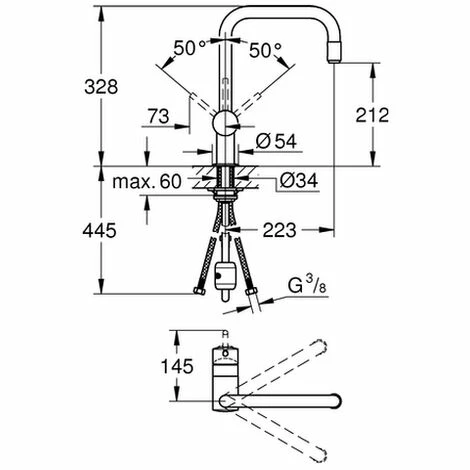 GROHE Minta Einhand-Spültischbatterie, DN 15 U-Auslauf Einlochmontage GROHE StarLight Oberfläche GROHE SilkMove 46 mm Keramikkartusche herausziehbarer Mousseurauslauf variabel einstellbare Mengenbegrenzung schwenkbarer Rohrauslauf Schwenkbereich 360 Gra