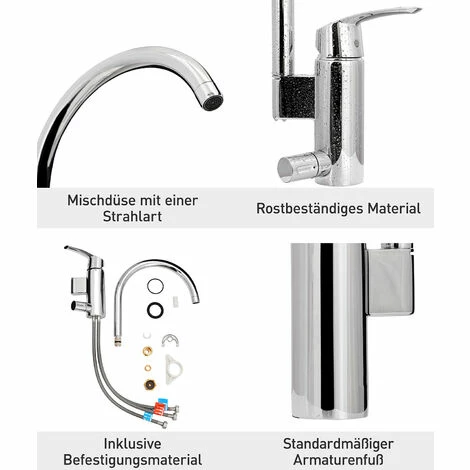 | Lieferumfang: | Spültischarmatur, Befestigungsmaterial, Anschlussschläuche |