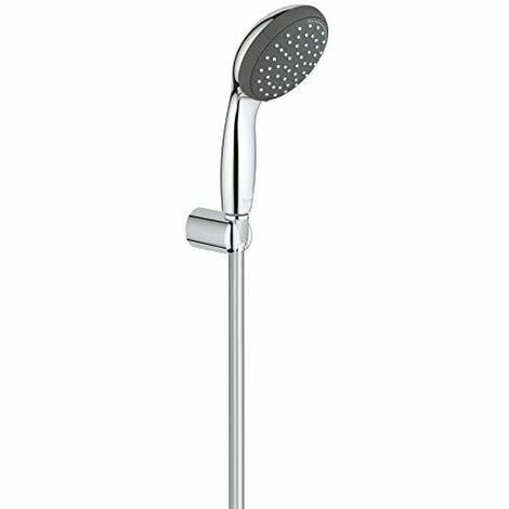 Verbessern Sie Ihr Duscherlebnis und genießen Sie mit dem GROHE Vitalio Start 100 Wandhalter-Set großartige Funktionen und umfassenden Komfort. Mit zwei Strahlbildern – das Gefühl eines sanften Sommerschauers der Rain Strahl-Funktion und der kräftige. belebende Jet Strahl– können Sie Ihre Dusche der aktuellen Stimmung anpassen. Umweltbewusste Verbraucher lieben den Durchflussbegrenzer auf 5.7 l/min von GROHE EcoJoy. Damit lässt sich Wasser und Geld sparen. ohne dass die Strahlqualität beeinträchtigt wird. Die GROHE DreamSpray Technologie stellt einen gleichmäßigen. kräftigen Strahl aus jeder Düse sicher. Mit der SpeedClean Antikalk-Funktion ist die Reinigung denkbar einfach. Sie reinigen die Düsen. indem sie einfach mit dem Finger darüber wischen. Ein ShockProof Silikonring verhindert Beschädigungen. wenn Ihnen die Brause aus der Hand fällt. Der umfassend isolierte Inner WaterGuide schützt die Oberfläche vor Überhitzung. verhindert Verbrühungen und trägt dazu bei. die strahlende. extrem langlebige GROHE StarLight Chromoberfläche zu erhalten. Das Paket umfasst den Vitalio Universal Wandbrausehalter und die Vitalio Start Handbrause mit 100 mm Durchmesser mit einem 1750 mm langen Vitalioflex Trend Brauseschlauch. Er ist für die Installation mit einem Durchlauferhitzer geeignet und es empfiehlt sich ein Wasserdruck von mindestens 1.0 bar.